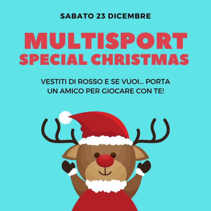 Per l’ultimo appuntamento del Multisportando 2023, che sarà sabato 23 dicembre presso la palestra Damiano Chiesa di Saronno, saremo tutti vestiti di rosso per festeggiare assieme il Natale… con una lezione speciale.