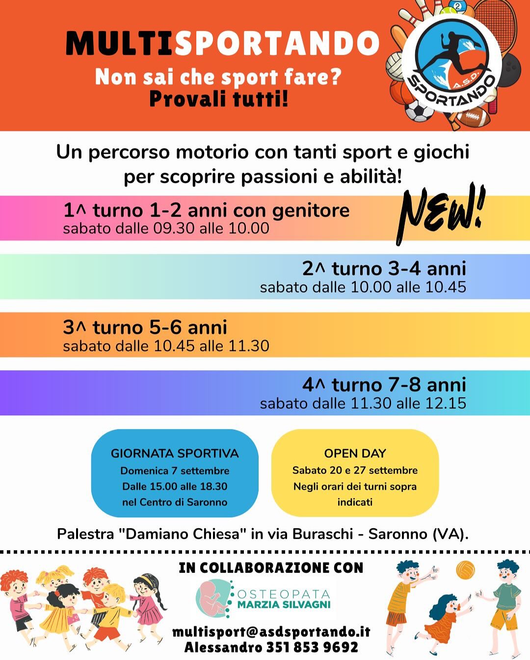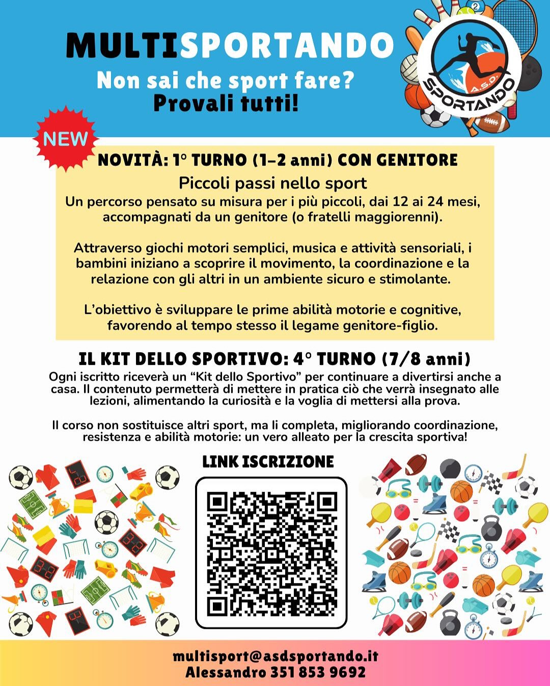 MultiSport….ando sta tornado: il percorso motorio dedicato ai bambini da 1 a 8 anni per scoprire tanti sport, crescere e divertirsi insieme! ![]()
